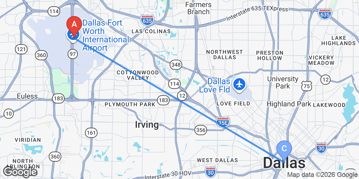 - 03Uber/Lyft to downtown Dallas (25-35 min, $25-40)